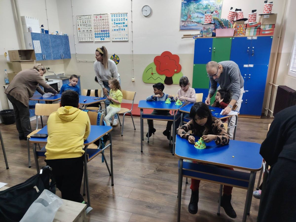 Радионицу под називом”Чаролија малих руку”организовали су учитељи првог разреда Нина Н. И Јелена С. Ученици од првог до четвртог разреда правили су једноставне украсе кроз прилагођене технике а свој допринос и помоћ у изради пружали су и учитељи Јелена М., Душан. K., Ирена О. , Милена Ј. И Душица М.
