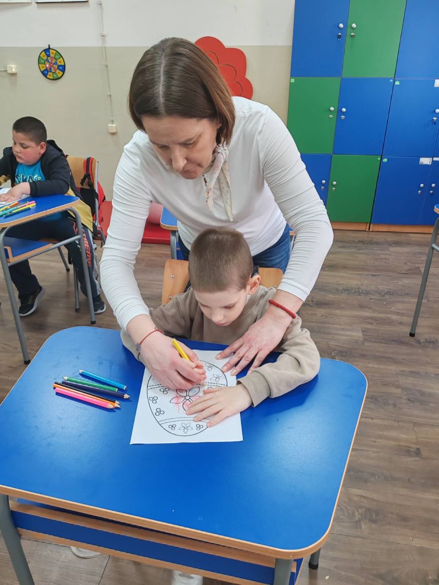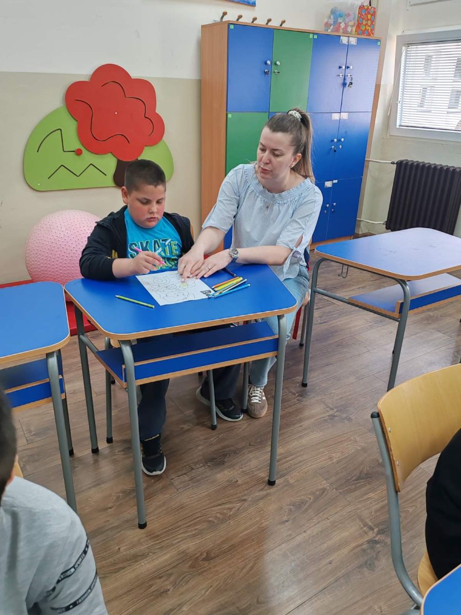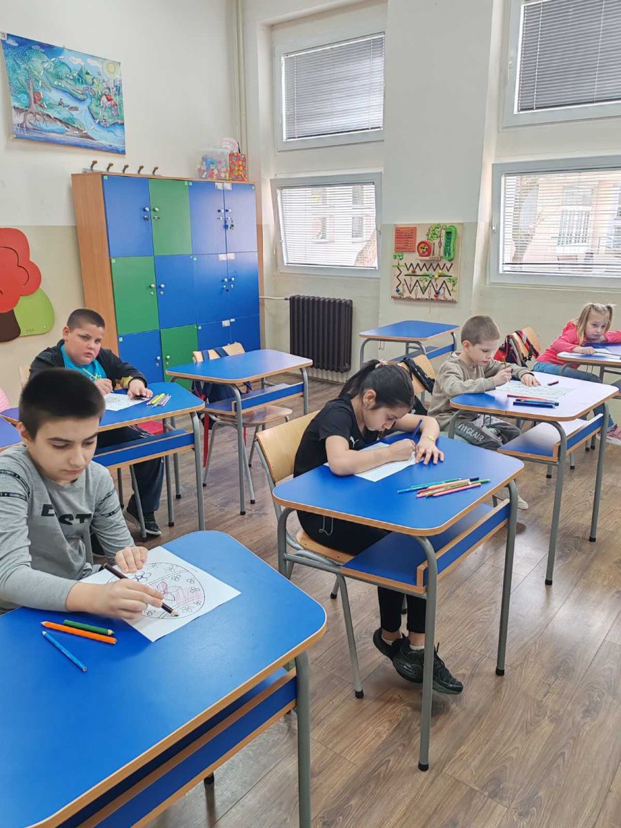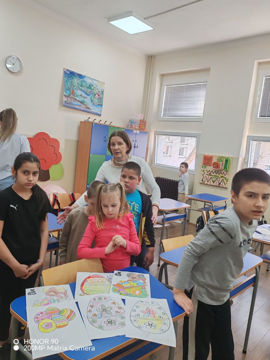У духу предстојећег Ускрса, ученици млађих разреда су учествовали у креативној радионици „Шарена ускршња чаролија“. Са пуно маште и радости украшавали су јаја од стиропора, али и цртали ускршње мотиве на папиру. Користили су различите технике и материјале показујући своју креативност и маштовитост.Посебно уживање било је прављење декорација – јаја су стављали на штапиће, украшавали сунђером и машном, а затим све то смештали у корпице и букете које су пажљиво правили. У томе су им помогли и наставници, дефектолози: Нина Недељковић, Јелена Стаменковић, Ирена Обретковић, Јелена Максимовски, Душан Којић.